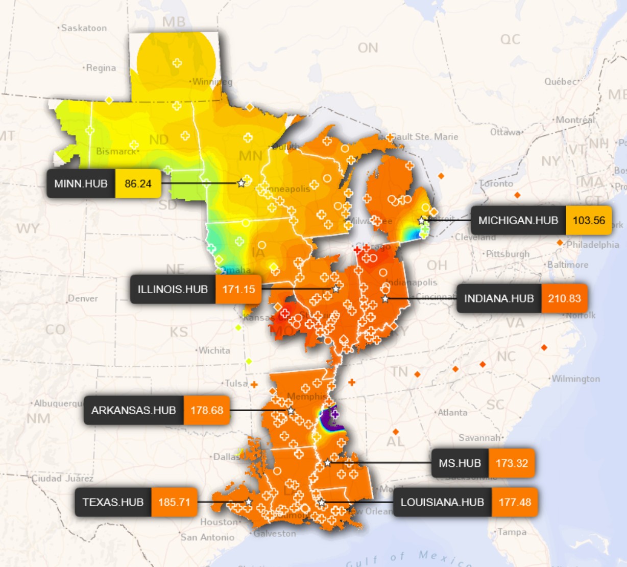 When there’s excess supply in one grid, the market sends a price signal to incentivize power to flow from one large grid to another with higher demand and lower supply. Throughout Fern and the following weekend, there were many instances when this interchange was quite significant for MISO, PJM, SPP, ERCOT and neighbors.